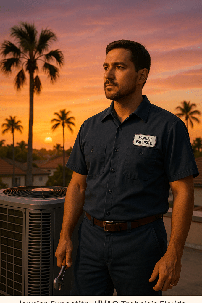 This is Jonnier Exposito, your trusted HVAC technician. I fix air, but I also care.